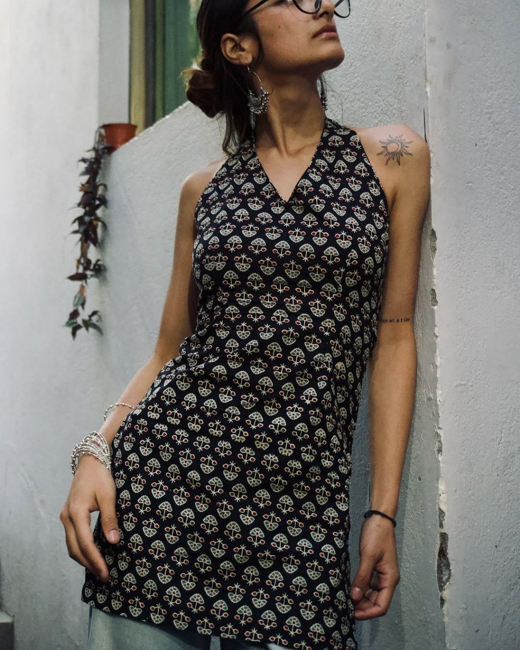 The Gulab Halter Neck Kurti, tied at the back of the neck, allows for graceful exposure of the upper back and frames the shoulders beautifully—drawing on classic halter-neck silhouettes that are both flattering and timeless. Crafted from lightweight 100% pure cotton, the fabric is breathable and soft, making it ideal for warm weather or relaxed summer evenings. This Kurti is crafted from pure cotton and features an authentic handblock print design, a timeless art form that is especially renowned in Jaipur.